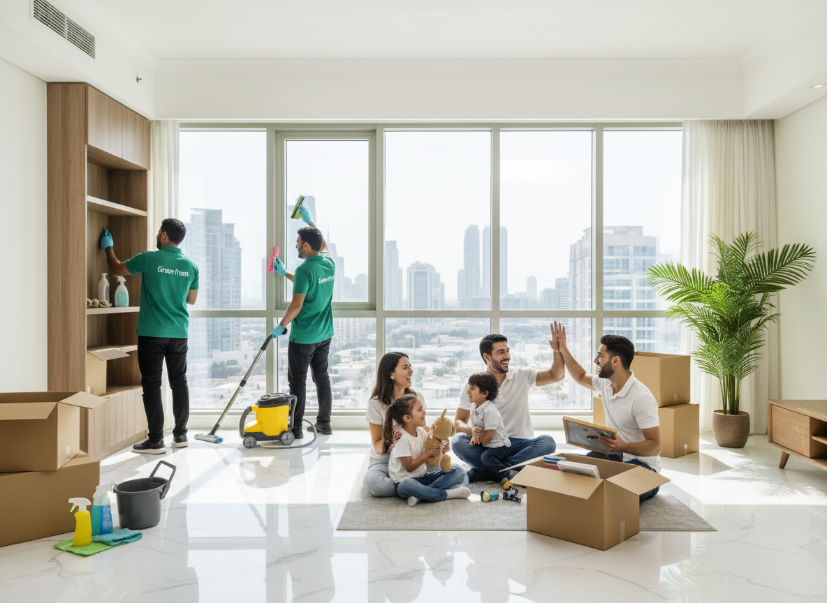 Green Fresh Cleaning Services offers thorough, environmentally friendly move-in and move-out cleaning services in Dubai that complies with tenancy, agent, and landlord requirements. We make sure your space is clean, sanitized, and prepared for inspection or occupancy, whether it’s an apartment, villa, office, or commercial space.